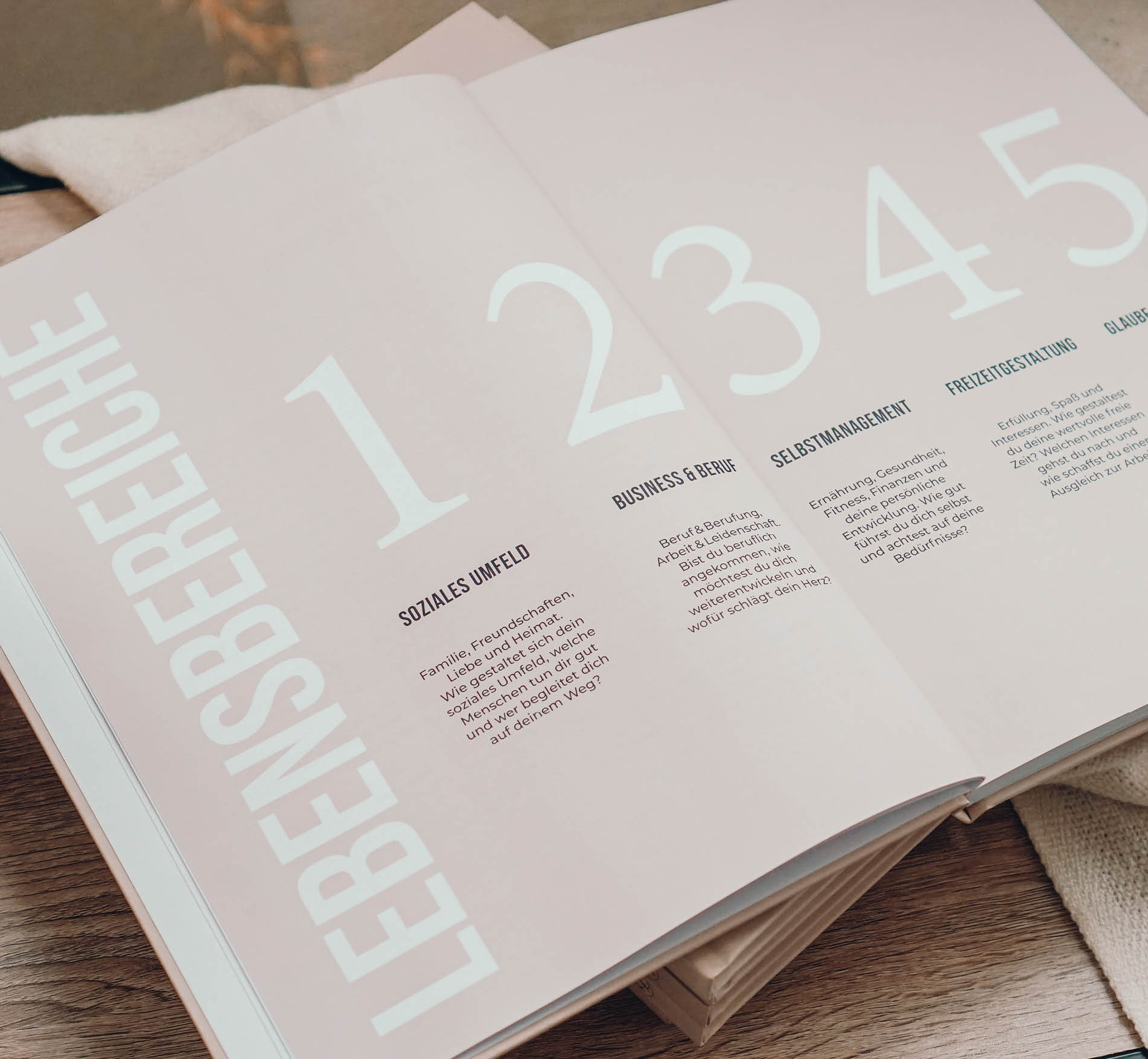 findest du jeweils einige konkrete Fragen, die du mal in Textform, mal auf einer Skala, mal als Multiple Choice beantworten kannst. Natürlich ist es dir freigestellt, Fragen auszulassen, wenn sie nicht auf dich zutreffen. In der Reihenfolge der Fragen wirst du Schritt für Schritt durch die Jahresreflexion geführt. Nach jedem Lebensbereich gibt es eine freie Seite für eigene Notizen.