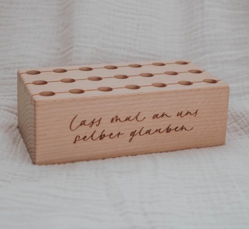 Stiftehalter aus Holz – „lass mal an uns selber glauben“