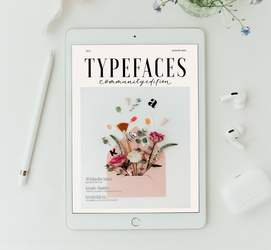 Die TYPEFACES Communityedition ist die erste Ausgabe des beliebten Kreativmagazins TYPEFACES. Es handelt sich um ein E-Magazin, also eine digitale Ausgabe, die du auf dem Desktop oder Tablet durchstöbern kannst.