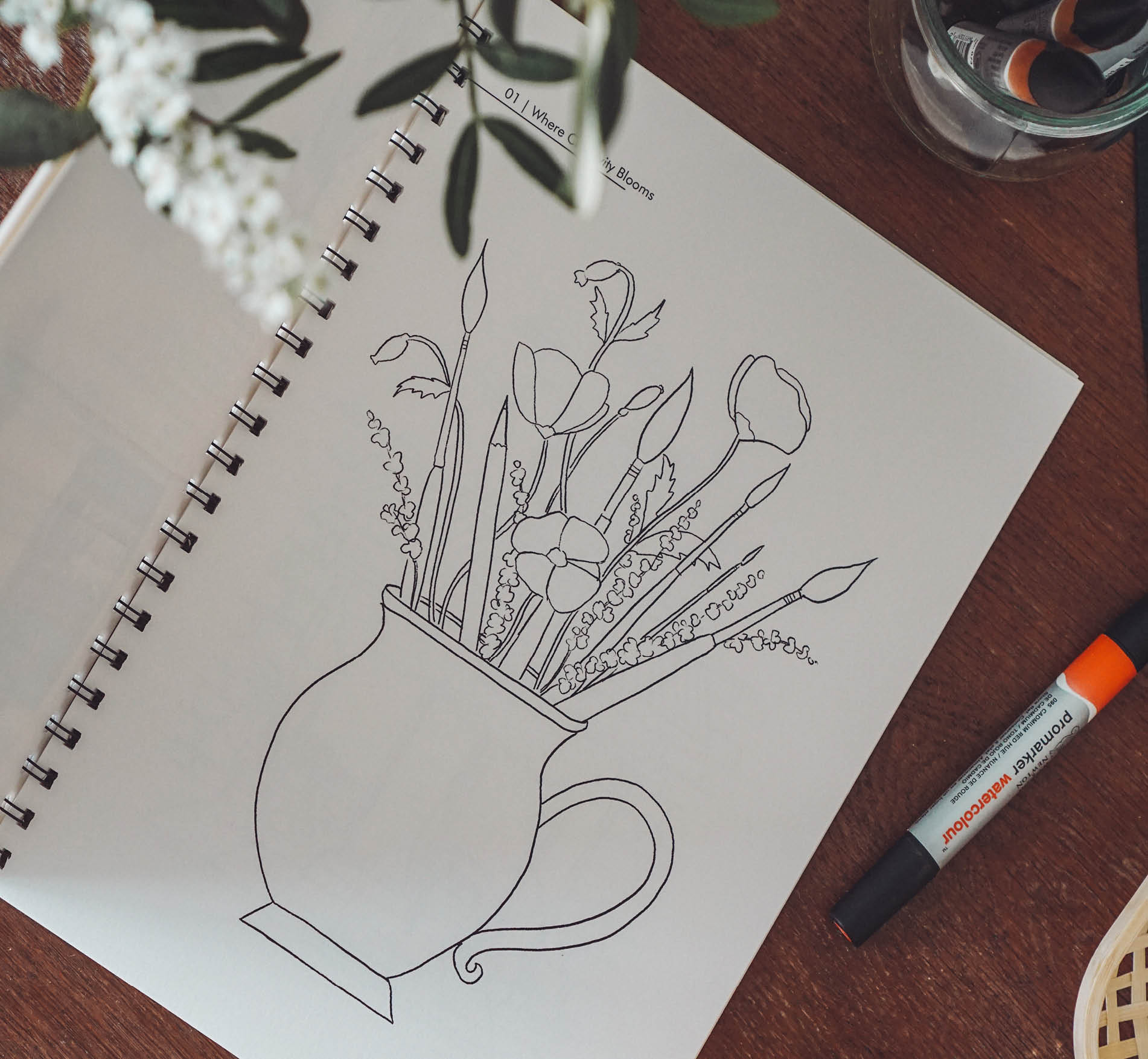 Mit Kreativmaterialien, wie Stiften, Pinseln und Farben zu arbeiten ist für den großen Teil der Gesellschaft eine Abwechslung zu ihren täglichen Arbeitsmaterialien. Sie eröffnen dadurch einen ganz neuen Raum und geben neue Möglichkeiten, sich auszudrücken und Dinge auszuprobieren. Unter dem Aspekt der Achtsamkeit geht es jedoch nicht darum, eine bestimmte Kreativtechnik, wie z.B. das Handlettering oder Aquarellmalen, von der Pike auf zu erlernen. Der Fokus liegt auf dem „einfach machen“ um des Machens Willen.
